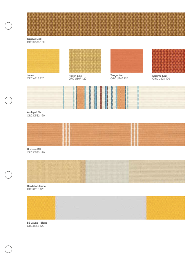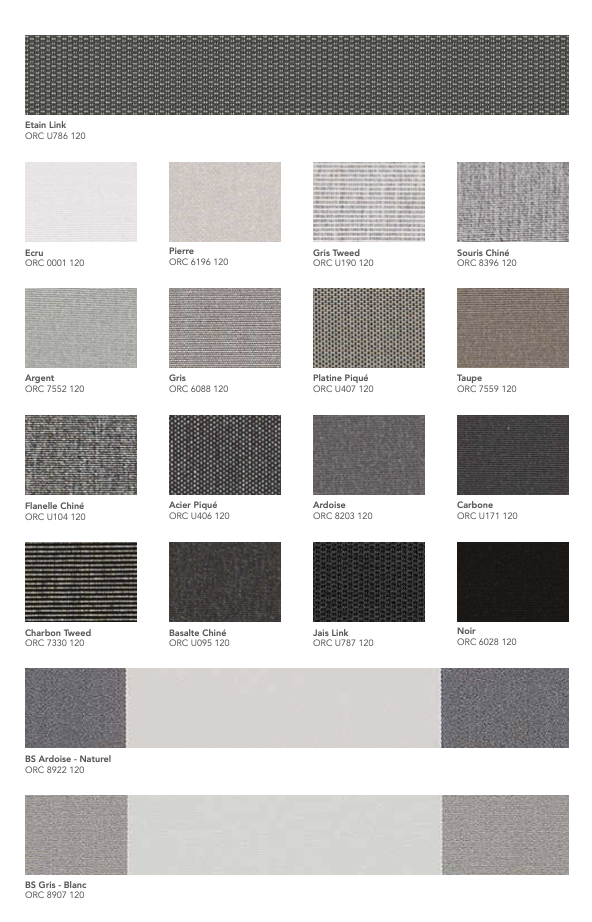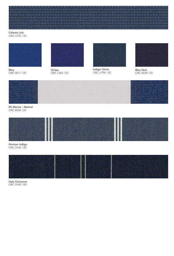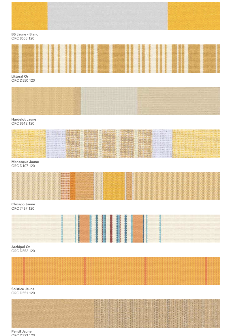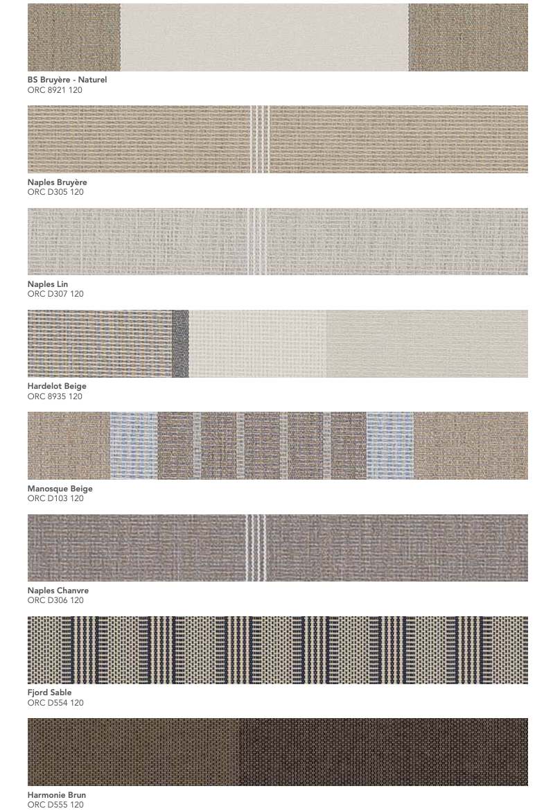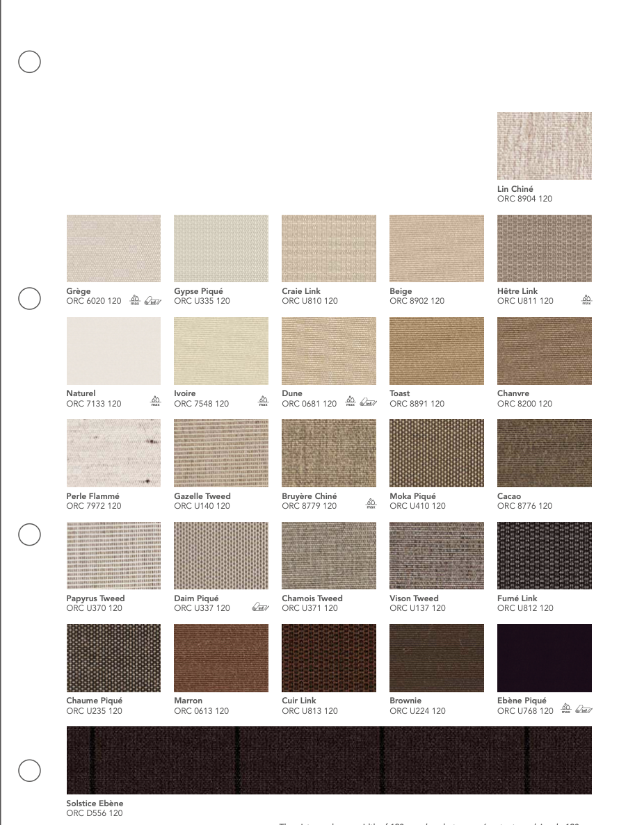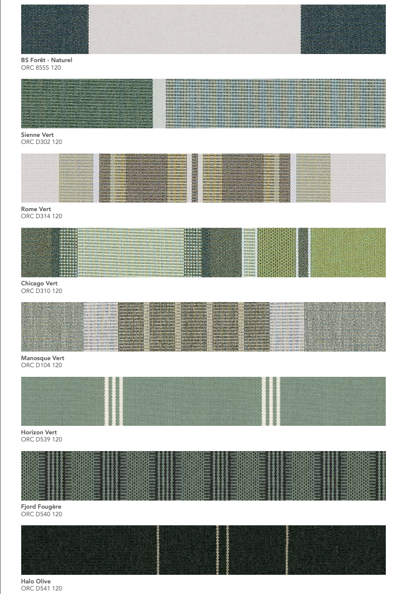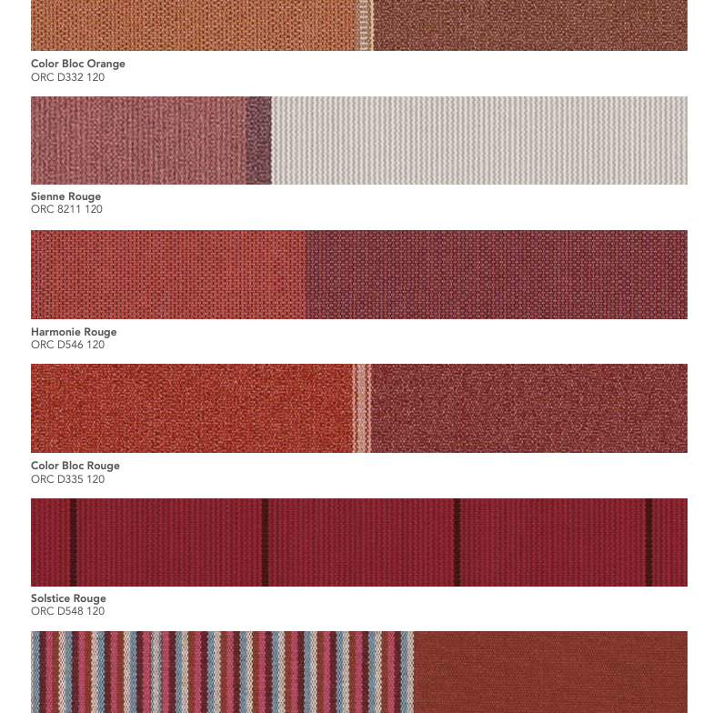 La gamme Orchestra® de Dickson est une toile acrylique teint masse reconnue pour sa résistance aux UV, aux intempéries et à la décoloration. Conçue pour un usage extérieur durable, elle garantit une excellente protection solaire et une tenue des couleurs exceptionnelle dans le temps.
